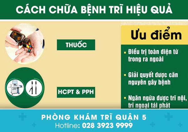 Tại Phòng khám bệnh trĩ Quận 5 (số 80 - 82 Châu Văn Liêm, P11, Q5, TPHCM), các chuyên gia Hậu môn – trực tràng áp dụng những phương pháp sau trong điều trị bệnh trĩ: