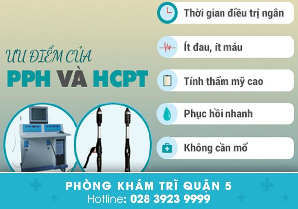 Ưu điểm của phương pháp PPH và HCPT: phương pháp xâm lấn tối thiểu Hàn Quốc nhanh chóng, không đau, ít chảy máu, không ảnh hưởng đến cơ tầng hậu môn, khả năng hồi phục nhanh, hiệu quả lên đến 98%, hạn chế tái phát…