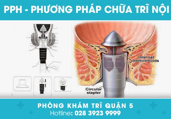 ✤ Phương pháp PPH: Đây là phương pháp được cải tiến từ phương pháp Longo truyền thống, khắc phục được các nhược điểm của phương pháp Longo. Thiết bị PPH được đưa vào bên trong ống hậu môn, dồn búi trĩ vào trong lòng thiết bị, tiến hành thắt nút mạch máu, dùng dao điện loại bỏ búi trĩ và đưa ra khỏi hậu môn.