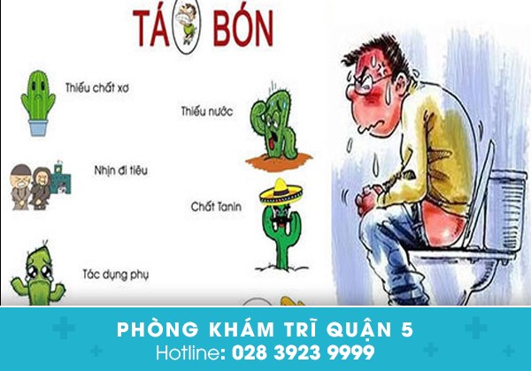 Táo bón có thể là nguyên nhân cũng có thể là có thể biểu hiện của các bệnh hậu môn – trực tràng như: bệnh trĩ, nứt hậu môn… Táo bón do mắc các bệnh hậu môn được lý giải như sau: bệnh trĩ, nứt hậu môn có thể gây đau rát hậu môn khi đại tiện, khiến người thường xuyên ám ảnh và nhịn đại tiện từ đó dẫn đến táo bón.
