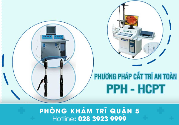 → Phương pháp HCPT: Là phương pháp thích hợp cho mọi loại bệnh trĩ, ở nhiều mức độ khác nhau, nhưng đặc biệt là trĩ ngoại. Đây là kỹ thuật dùng sóng điện cao tần để loại bỏ búi trĩ mà không ảnh hưởng đến những cơ quan xung quanh.